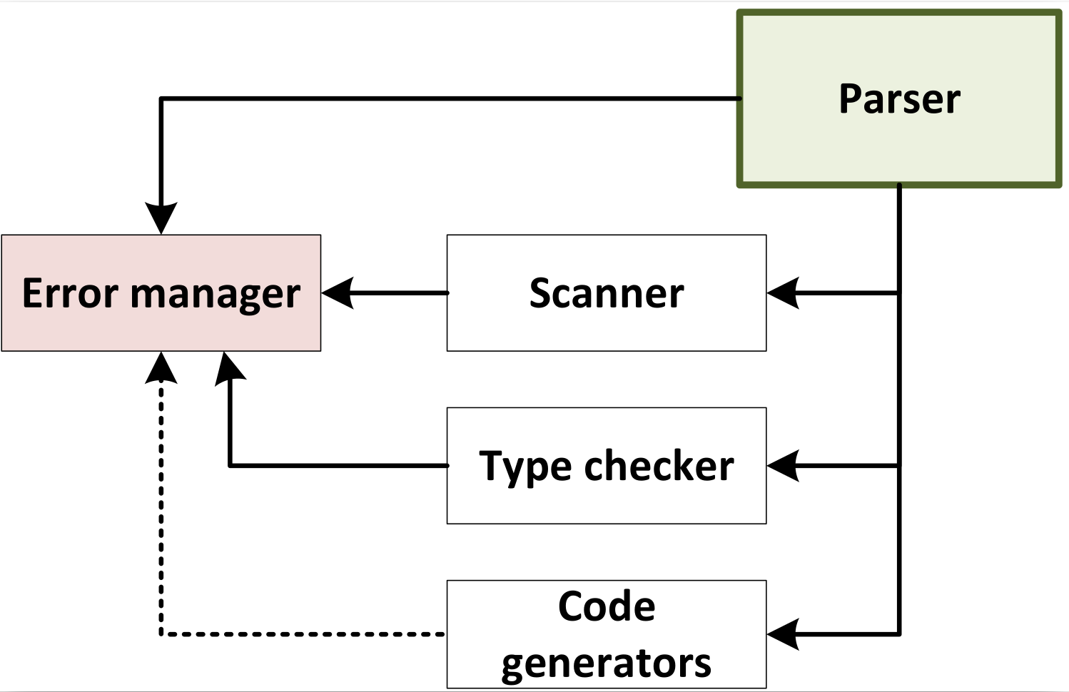 Error Manager: Handles and reports errors that occur during the compilation process.
