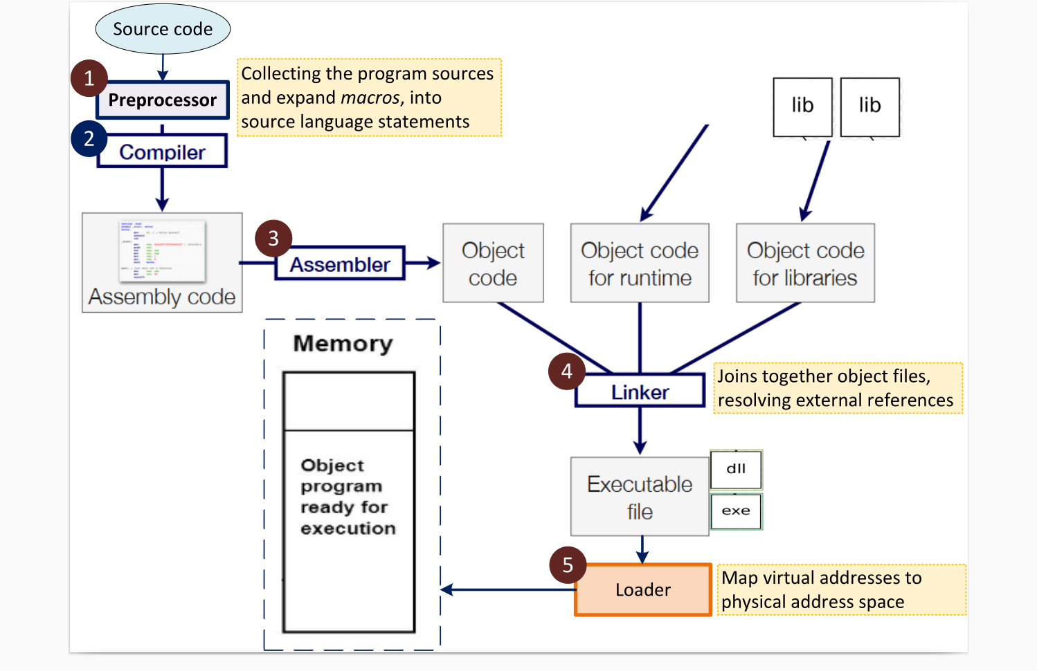 - Compilation: Parsing the preprocessed source code and generating an intermediate representation.