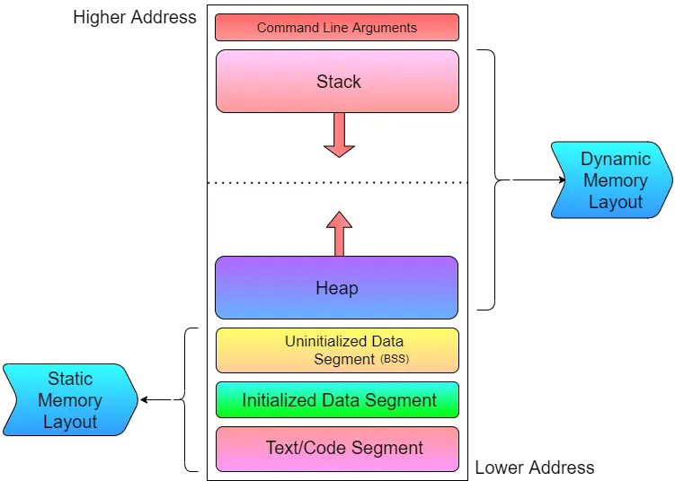 BSS (Uninitialized Data Segment): Holds global and static variables without initial values.