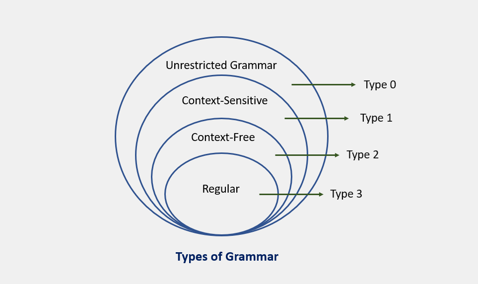 CFG, on the other hand, is a superset of Regular Grammar, as depicted below: